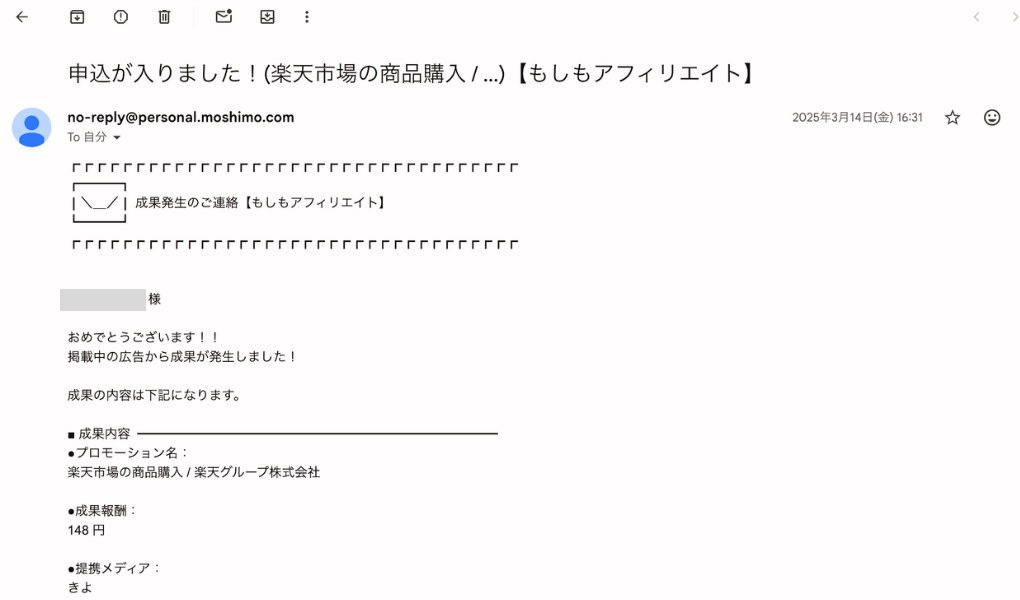 初めてのアフィリエイト成果は、もしもアフィリエイトの楽天アフィリエイトでした。